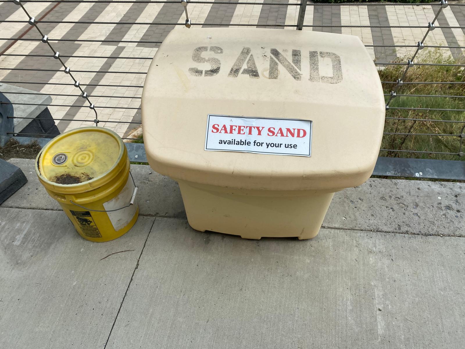 The biggest hazard during the winter is slipping on ice. The University of Calgary prioritizes primary walkways, wheelchair ramps, building entrances and fire exits to make sure that they are clean during the winter. However, the University also provides the students with sand near the doors incase of missed slippery ice patches.