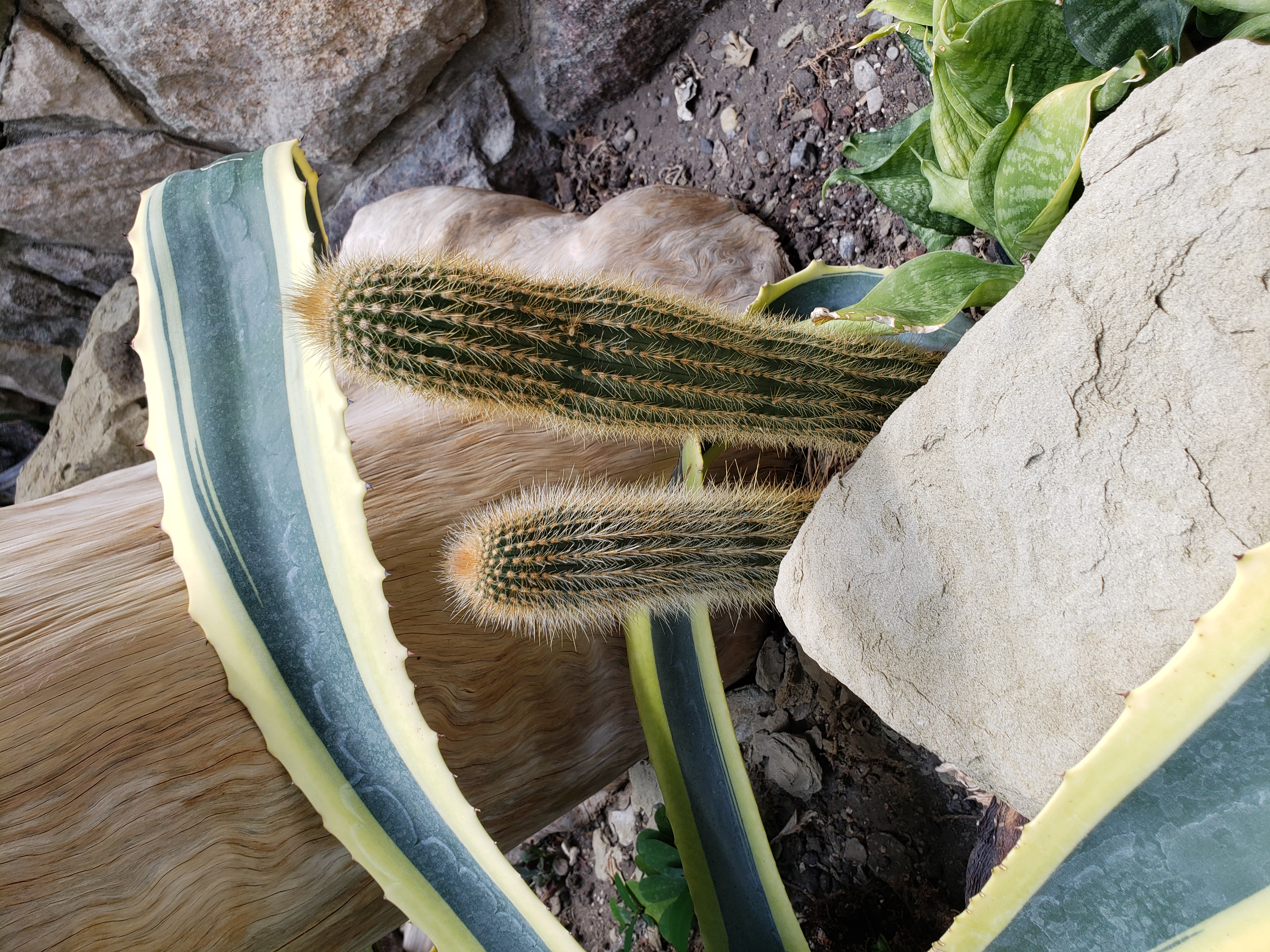 Vatricania guentheri is an evergreen, perennial columnar cactus. It can grow up to 2 m (6 ft 7 in) tall. Branching occurs from the base, with pale green stems up to 10 cm (4 in) in diameter. It has about 27 ribs. The flowers are initially borne in a cephalium (reddish brown wool) running down from the crown (top of the plant) on one side, of the branches, later in a superficial dome cephalium. It blooms during the early summer and develops yellowish whitish flowers that get up to 8 cm long and 5–3 cm (2–1 in) in diameter. The flowers are yellowish white areoles or funnel shaped flowers, with 25 spines, 5–22 mm (0–1 in) long. It has edible fruit. https://en.wikipedia.org/wiki/Vatricania